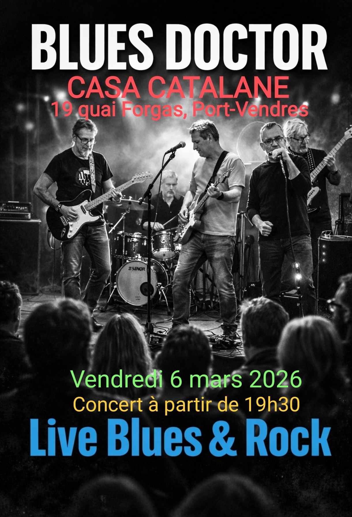 Le blues doctor se produira le Vendredi 6 Mars 2026 à partir de 19h30 à la CASA CATALANE 19 quai P Forgas à Port Vendres.